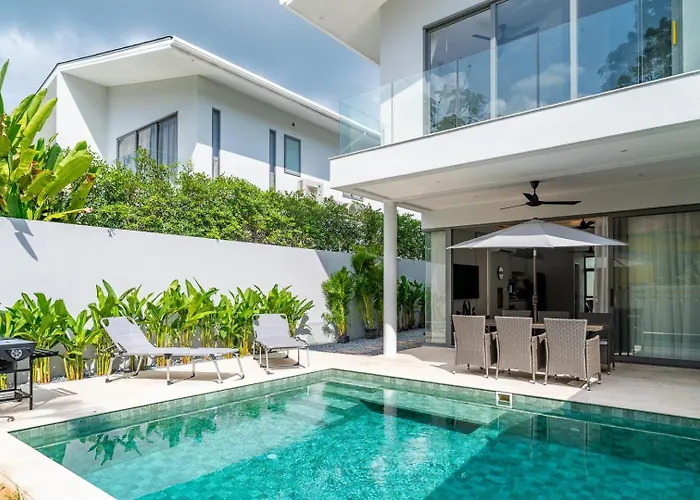 La New 3 Bed Pool Villa In Bophut! Koh Samui está situada a tan solo 1 km de la Aldea de Pescadores y ofrece a los huéspedes la posibilidad de disfrutar de sus veladas en una terraza con cocinita. Los huéspedes pueden relajarse en la piscina privada y disfrutar de la proximidad al Safari Funny Day, que está a unos 5 minutos a pie.